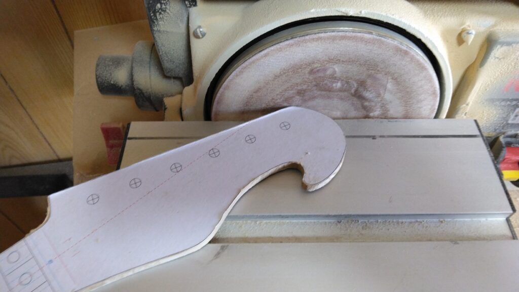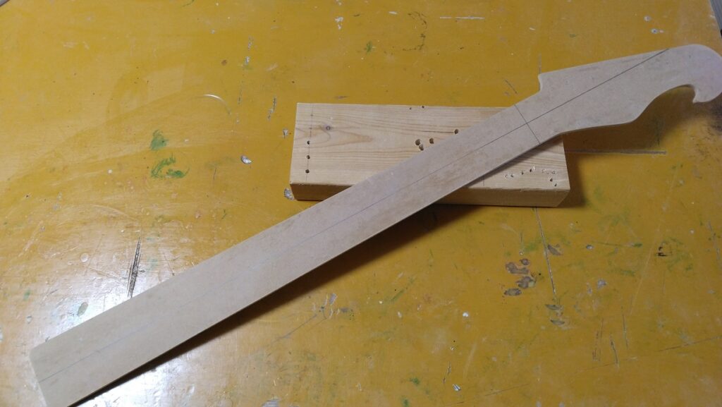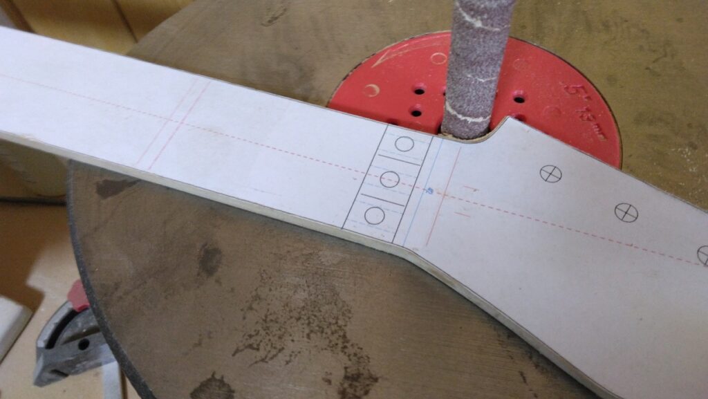 これでネック端部とポケットのテンプレートは完成。次はネックのテンプレートを作ります。